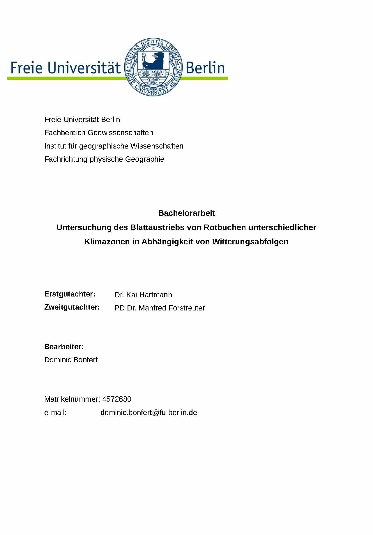 von Witterungsabfolgen, Bachelorarbeit, Freie Universität Berlin