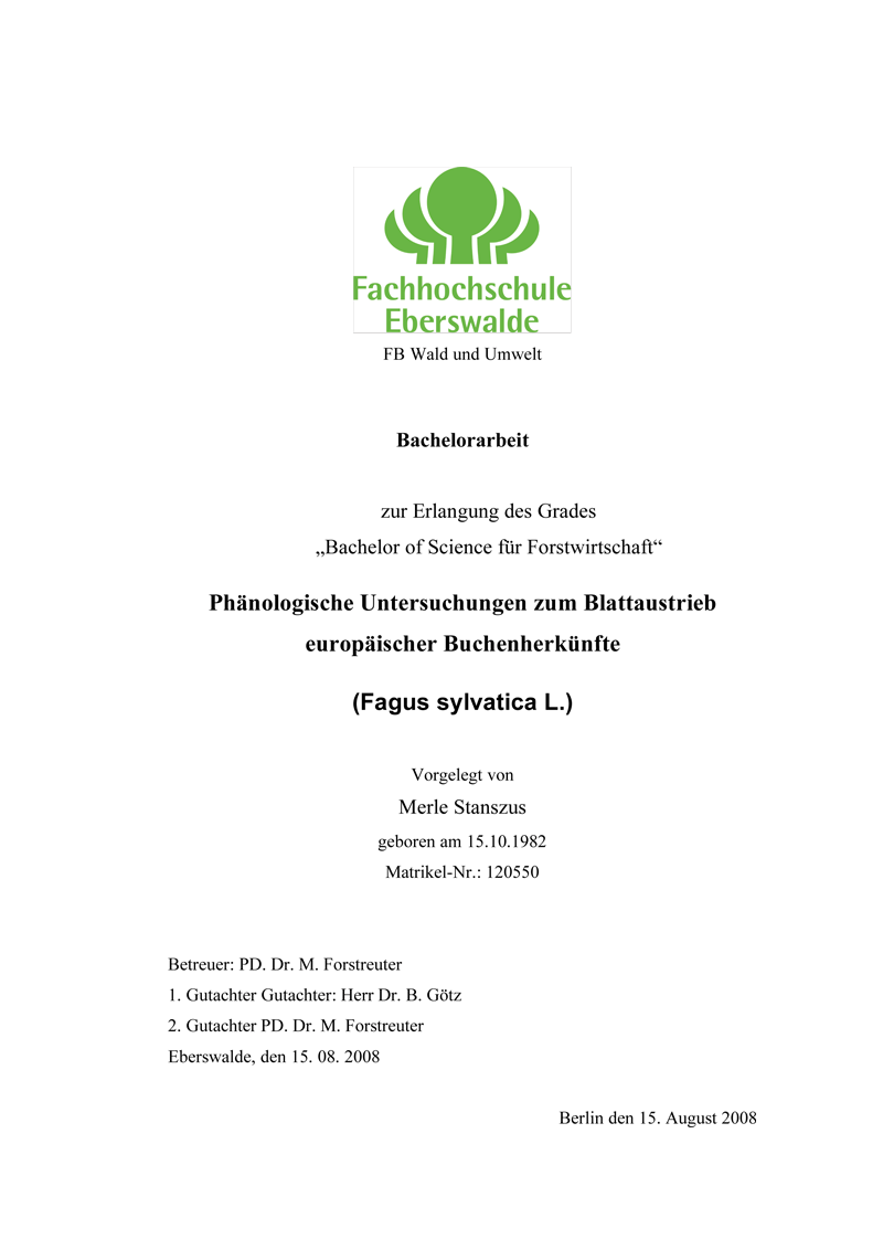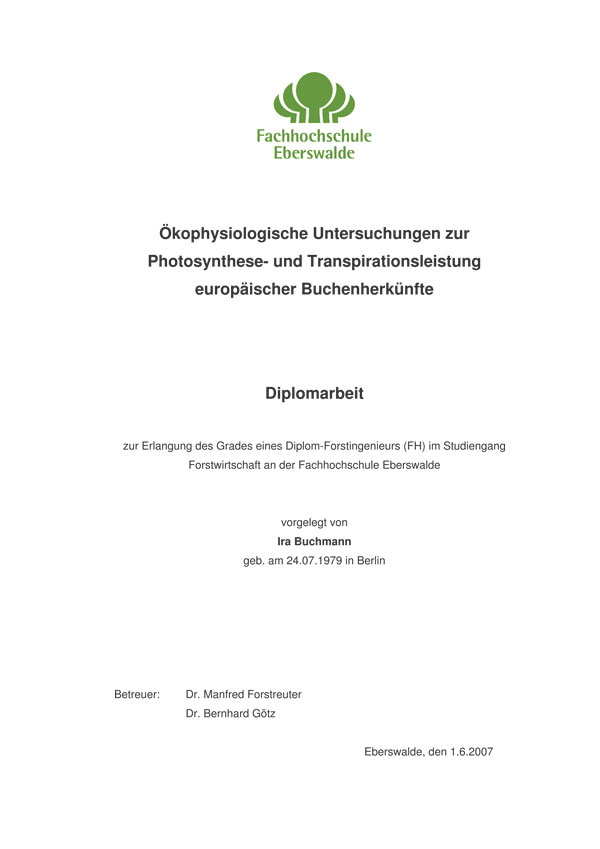 sylvatica L.), Diplomarbeit in Kooperation mit der Universität