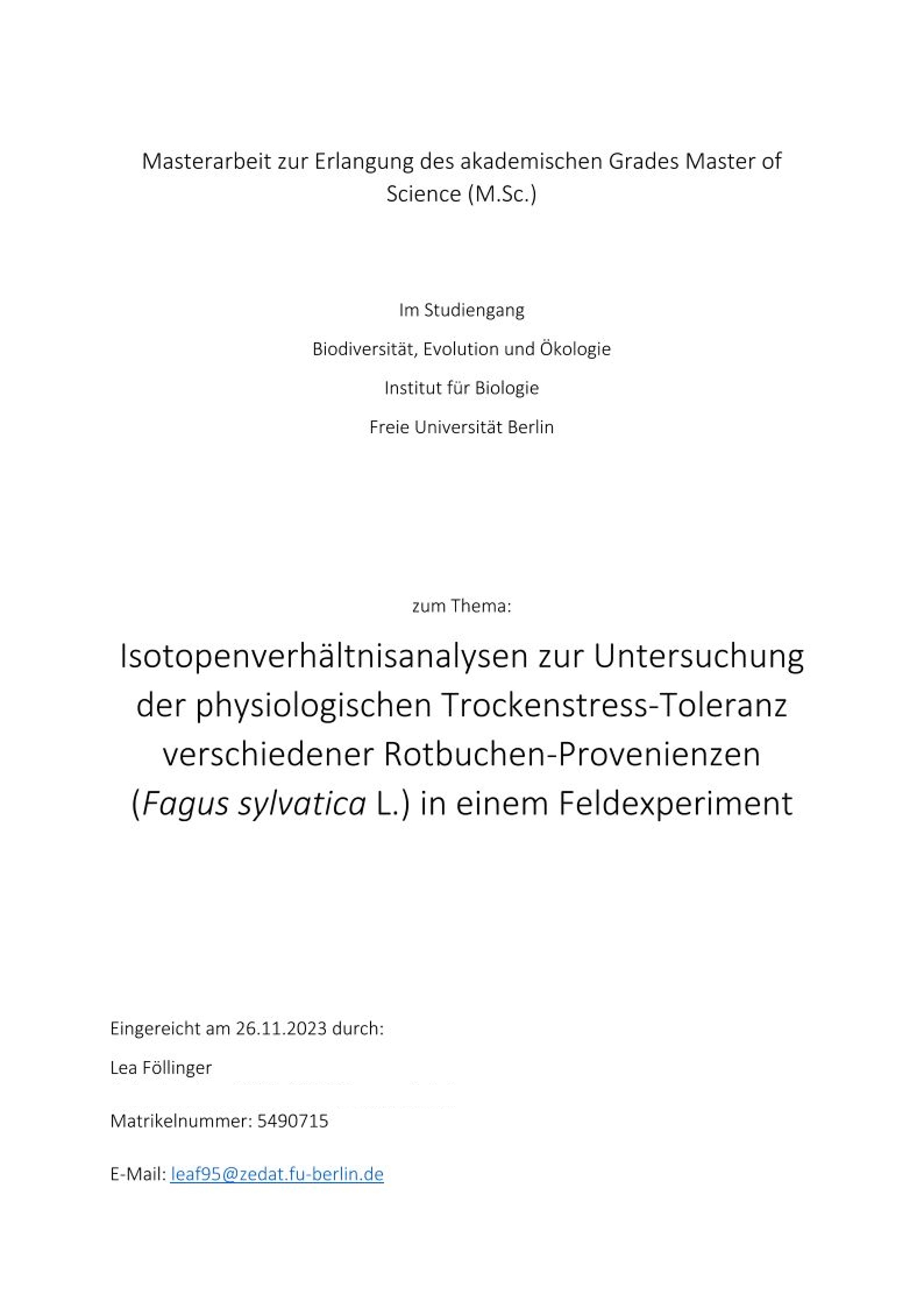 Masterarbeit, FU-Berlin
