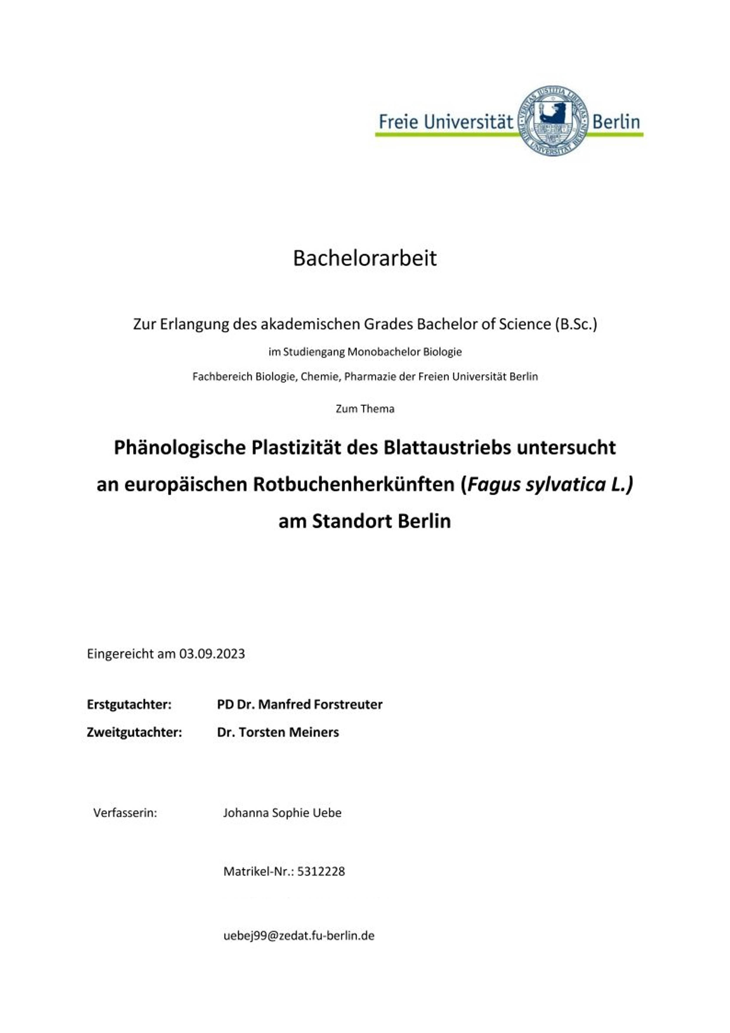 (Fagus sylvatica L.) am Standort Berlin, Bachelorarbeit, FU Berlin